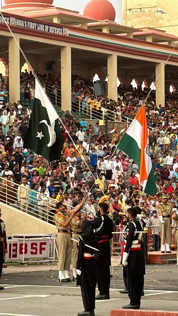The daily 5.25pm flag-lowering ceremony at the Punjabi town of Wagah Border, bordering India.