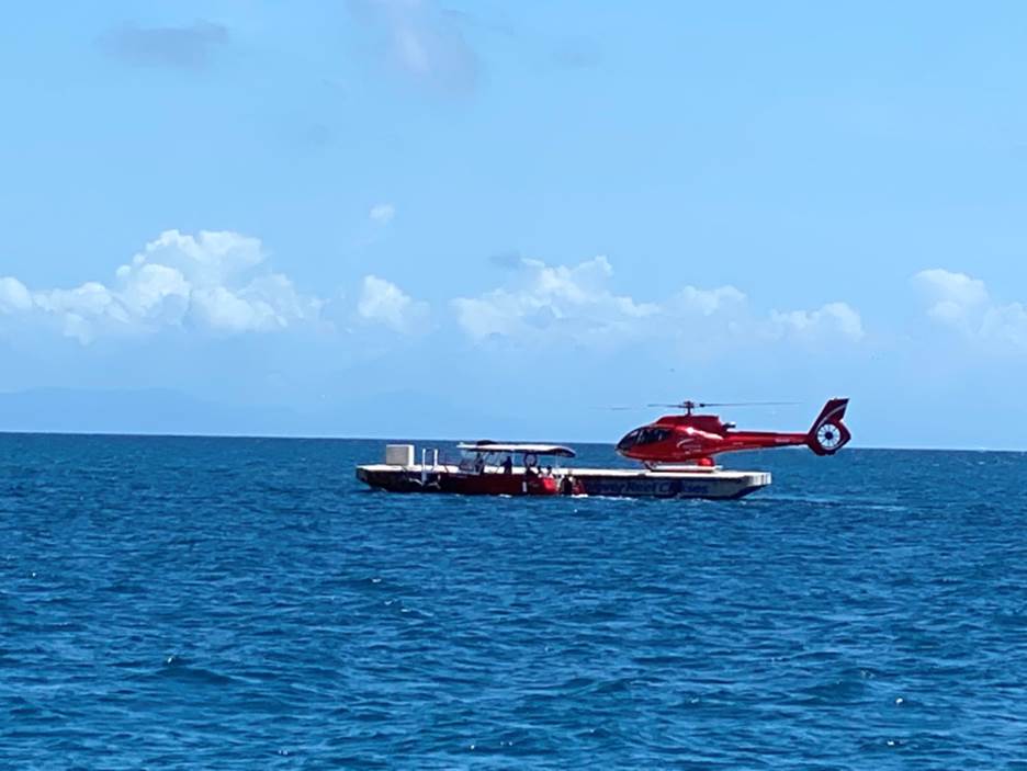 我们分成3批坐上直升机,要好好欣赏这地球上最美的装饰品,Great Barrier Reef。飞机师很贴心地时而低飞时而继续盘旋在上方,鸟瞰之下,只见一颗又一颗天蓝、靛蓝、蔚蓝和和纯白色的珊瑚礁,犹如闪烁着光芒的宝石,美艳得不不可思议!难怪啊,即时遥在月球上耶能清晰看见它。