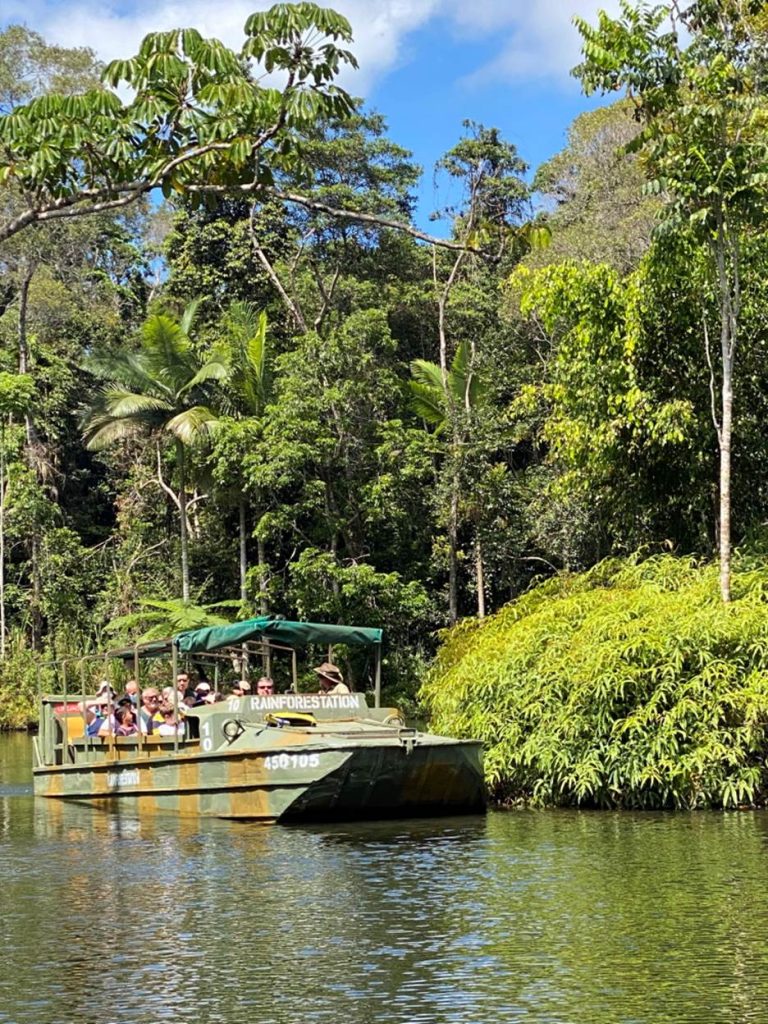 为了见识澳洲绿肺中心,我们前往离开Cairns仅30分子中路程的Rainforestation雨林公园。在这里,迎接我们的是Pamagirri土著,他们很热心地对我们展示了传统习俗,同时还载歌载舞演绎了精彩的民族歌曲与舞蹈。