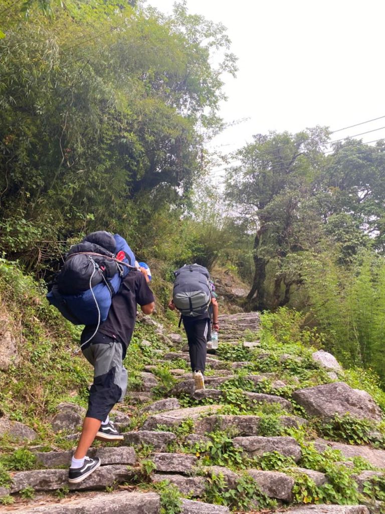 纵然如此,我们也得整装出发啊,因此队伍里还有专业的泥泊尔挑夫、生态向导与助手!值得一的是,这可是他们疫情后接待的第一批外国入境健行团体,大家的好心情可想而知!