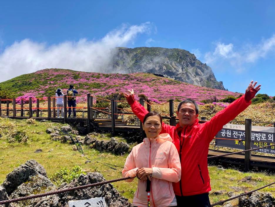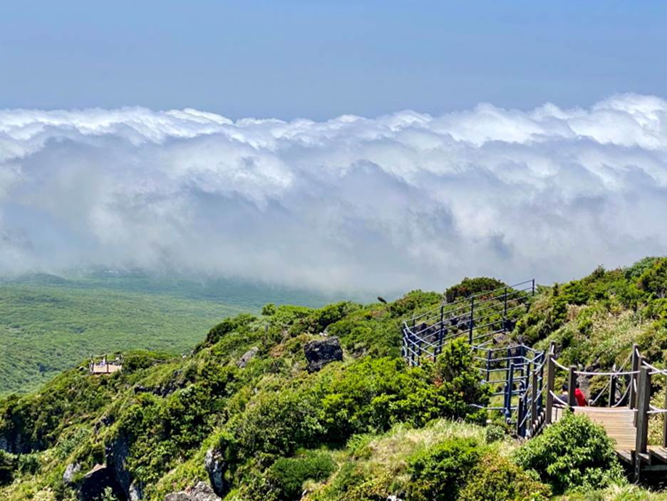 不管什么季节,高1947米,处在济州岛中央部位的汉拏山是至佳的trekking型国家公园。登山入口处是设在1280米的“灵室”,从这儿开始的第一个半小时,我们会经过幽静的枫叶密林,相信10月末的这一带会是秋风凉意的幽道,更会是诗情画意的小径吧!?随后的路段,就得一级一级踏着阶梯徐徐环绕而上;每登上100米,山上的温热带矮丛灌木与各种花卉就越是迥然不同。沿途梯级与步道都加上了安全护栏,也设置了观景台,一路环顾四周、眺望远方的平原与海岸线,心旷神怡。
