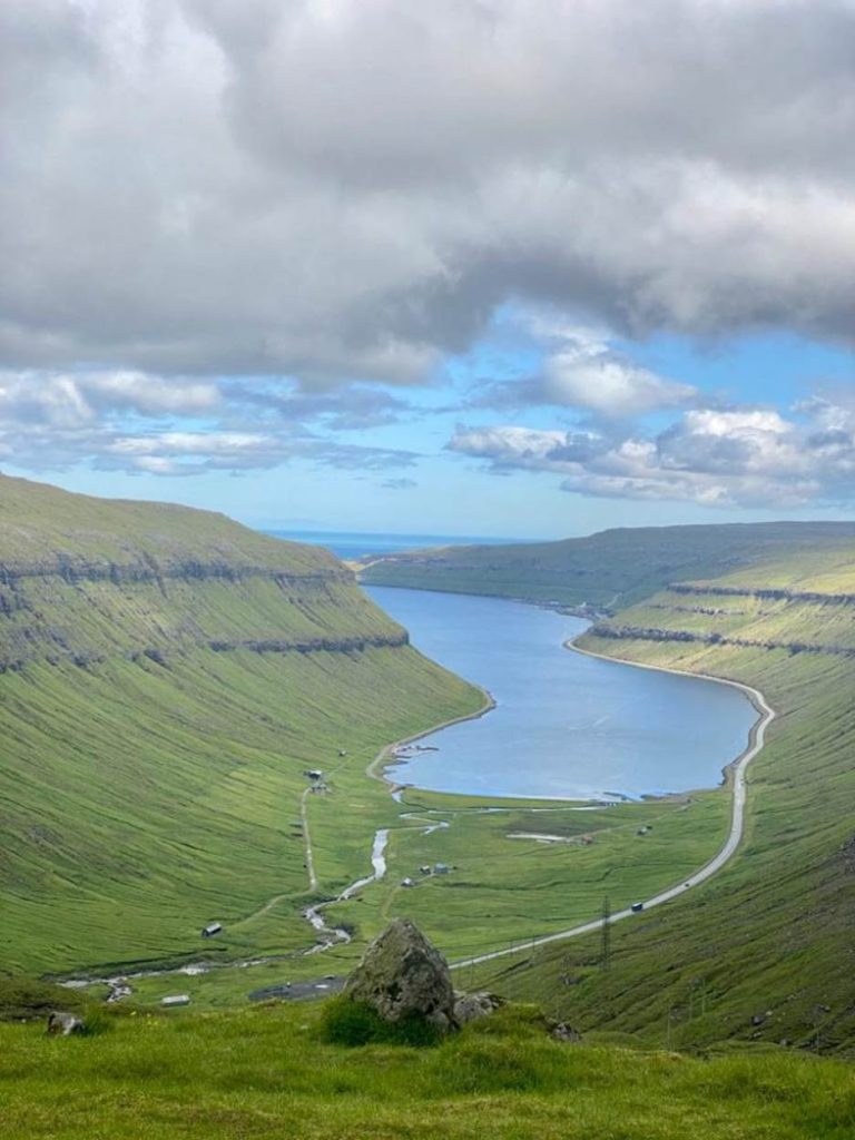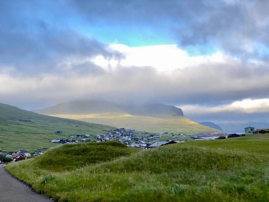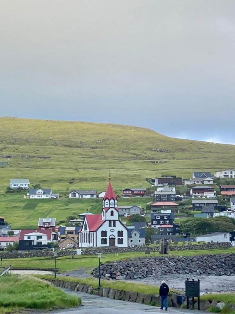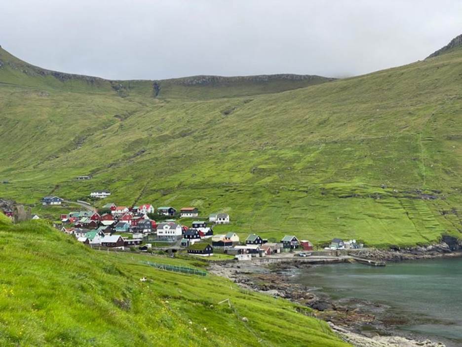 一路沿着海岸,我们看见了一座座大型智能三文鱼养殖场,这是法罗人的新兴产业。每一个无人操作的大圈圈里有着75000只三文鱼幼苗,养殖5年后,价值超过500万欧元。值得一提的是,法罗人也捕鲸食鲸,还有海豚,不过确实是非商业的捕鲸活动,纯粹是一种400多年来的祖传文化仪式。而且只捕捉那些非濒危比如长肢领航鲸,以及只限制白边海豚。如今丹麦政府还法定今年只允许捕抓500头白边海豚。事实是,如果法罗人不吃海里游天上飞的“食物”;那恐怕大家得经常挨饿了。严格来说,法罗群岛就是光秃秃的火山岩石表面,不长农作物。不过虽然树木不生,满山却覆盖了茂盛的绿油油的草皮,夏天也能种些马铃薯红萝卜和地瓜类来帮补一下。只是其余生活必需品,就只好依赖从丹麦进口。所以法罗的日常生活费还比1500公里外的哥本哈根来的更高些。法罗的一杯拿铁是30令吉,德士一上车就下车,三分钟车程是65令吉等等。当然,法罗人的福祉福利相对的也可与欧盟国家相提并论了。