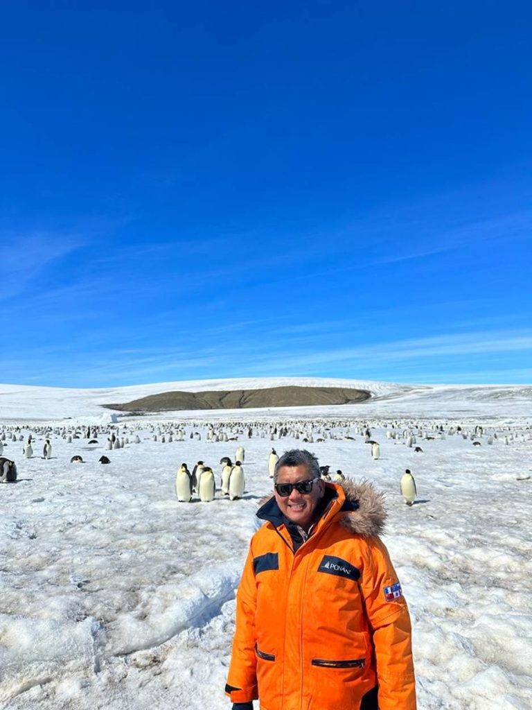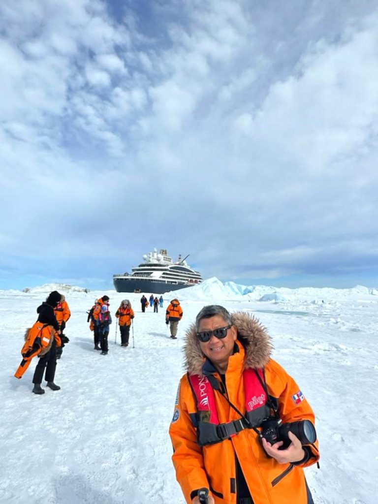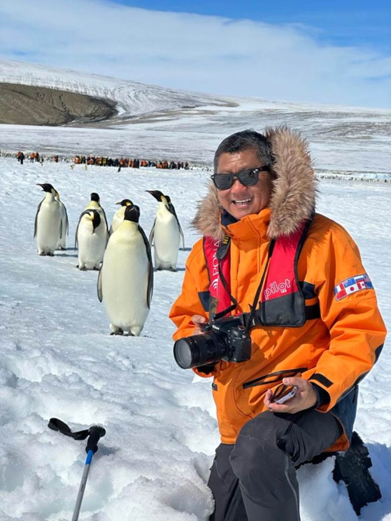 这一次是我第五次的南极远征,终极目标就是与帝王企鹅见一面。只不过,我得乘搭电力破冰船,穿越层层厚厚的冰浮冰海直驱极南地带才行。看来,帝王企鹅真的是超庄严尊贵啊!记得吗?疫情爆发初期,我被锁在南极邮轮上无法登岸,也无法回国。如今后疫情时期,我又回来南极探望企鹅们喽!虽不同邮轮号,但巧的是又与同一位船长搭档。我告诉这位一脸精明能干的法国籍船长说:你我在1万2933公里之外再度相遇,同样是为了远征极难南极追寻帝王;我的心愿,就拜托你啦!