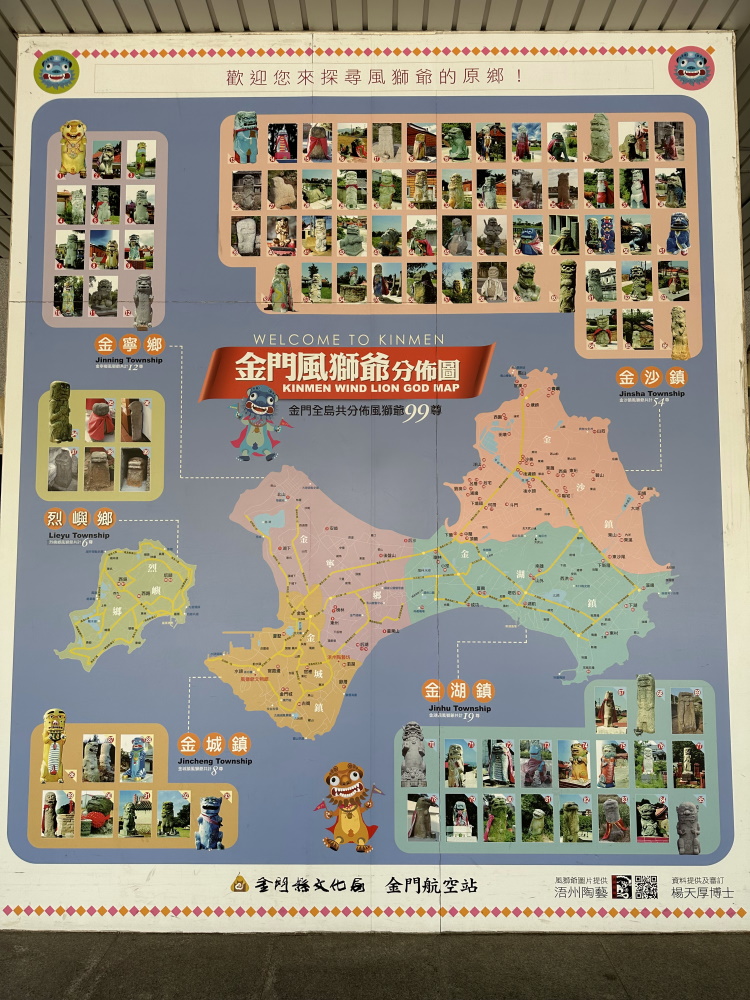 根据金门县文化局资料,分布在金门全岛的各种造型风狮爷总共有99尊,这还不包括民居屋顶与墙头上的小型风狮爷呢!