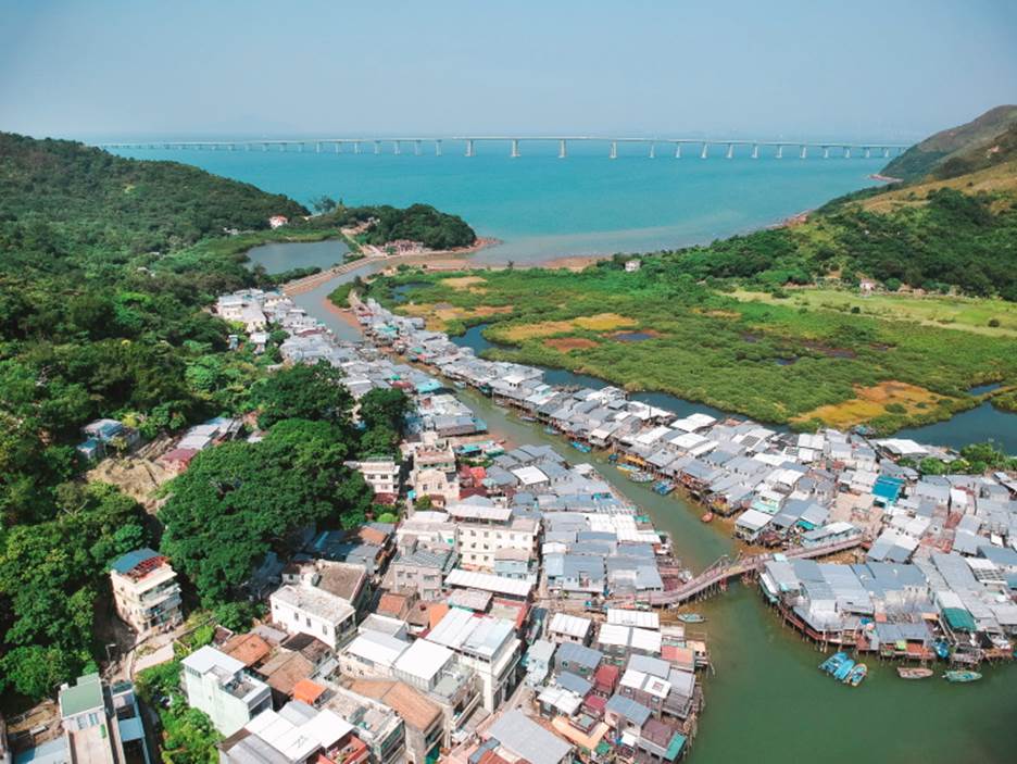 大澳鸟瞰图:棚屋沿着河口两岸林立,构成了一幅风格独特的渔村面貌;