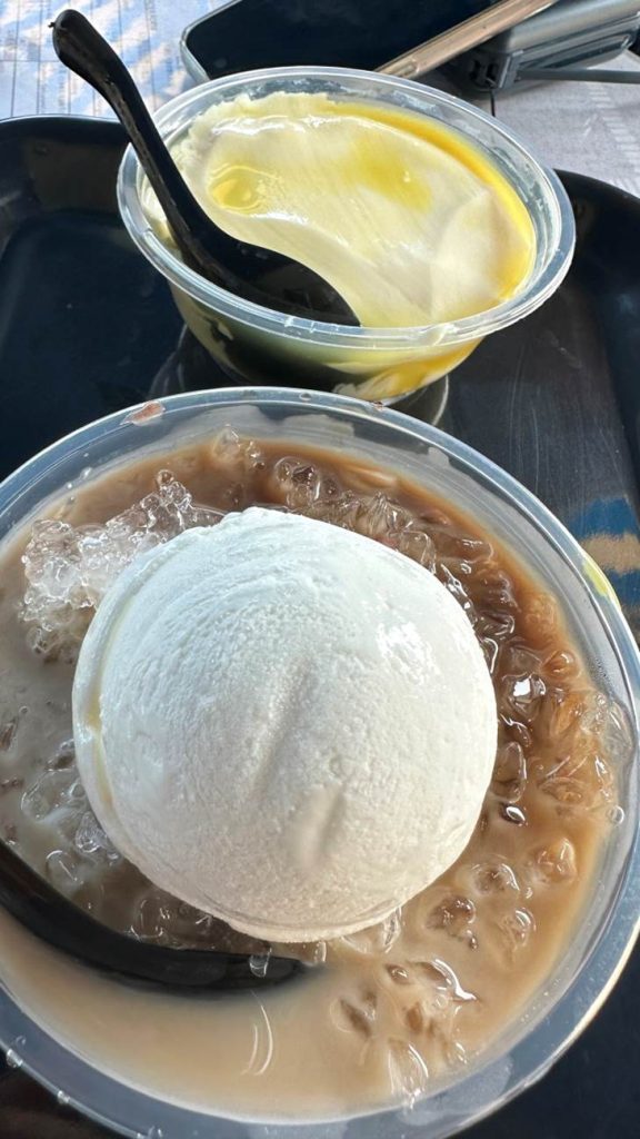 大澳糖水的“ 原汁原味",还是很令人心满意足的。我推荐你:在午后坐在“正记"户外的棚下,一小口一小口地尝着豆腐花之余,也欣赏游览船来来往往驶过的景象。这真不失为人生一乐也!更何况,被疫情“锁"了那么久,如今能远到异地,呆呆地看着乡下人家的日常作息,也是一种至高享受吧?!