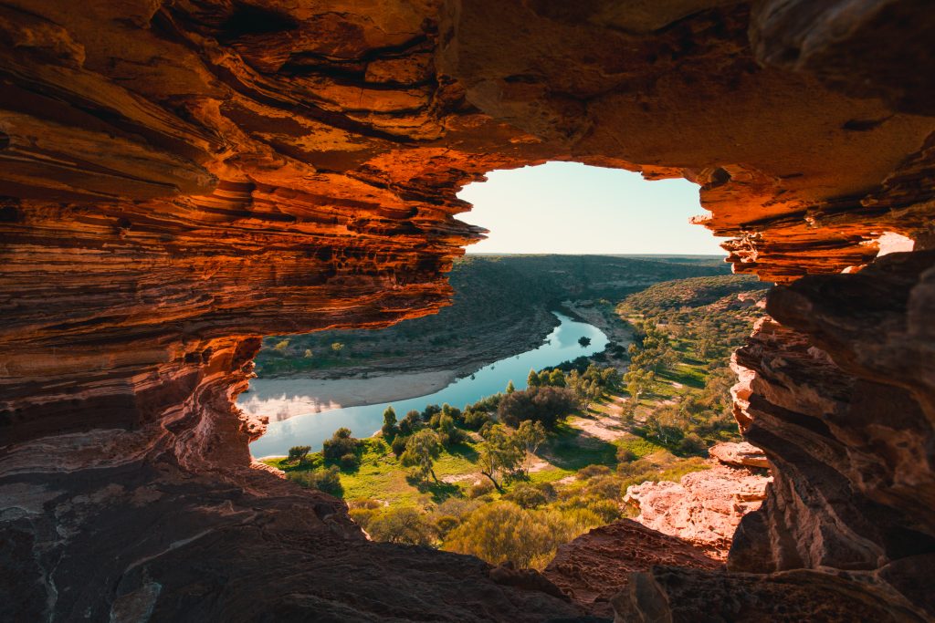 闻名遐迩的“自然之窗"——圈崖(The Loop),是光阴流逝的证明,是造物者随长时间风化“铸造"出来的“岩洞艺术"。不规则的岩石表面形成一扇仿如艺术品的窗口,乍看之下,就像框架着眼前的世界。从“世界之窗"的各种角度望去,山川、河流和树林尽收眼底,仿佛坐拥大好山河。