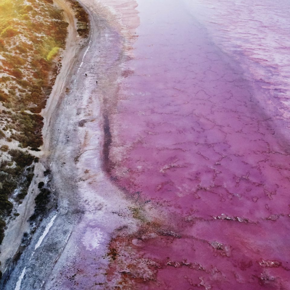 距离卡尔巴里国家公园以南,约50公里的赫特泻湖,是充满浪漫氛围的热门打卡景点。从地平线视角望去,粉嫩的赫特泻湖似乎与忧郁深蓝的海洋相连,其实不然。赫特泻湖面积达2500公顷,长14公里,宽2.3公里,其湖面低于海平面,四周被海滩沙丘将其与印度洋隔开。