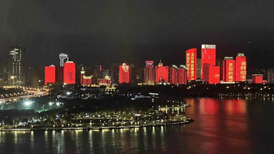 海口市是海南岛省会都市,当地居住着近300万人口。夜晚灯火璀璨,一副欣欣向荣景象。