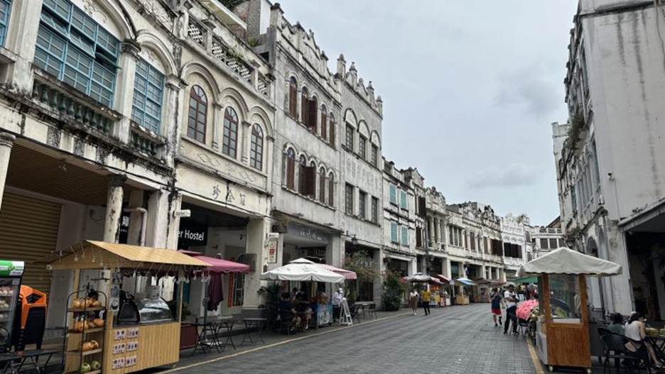 建于1849年的海口市骑楼老街,在1924年迎来了东南亚海南华侨大量资助与投资的热潮。在华侨的献意之下,中西合璧且富有殖民地风情的建筑群拔地而起。骑楼老街总面积8平方公里,其建筑风格设计都是两三层,最多五层的店居两用布局,而楼下商店长廊与楼之楼相连相通,并有南洋风独有的五脚基座,那是能遮阴挡雨之外,也方便顾客进入闲走逛店。