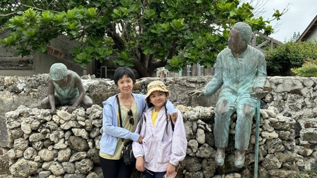 澎湖县政府真的体恤人心,在笃行十村用心还原了潘安邦与外婆的生活坊,这里仿佛时光隧道般让我们穿梭到过去,遇见真真实实的〈外婆的澎湖湾〉。当年,祖孙两的小小住宅就建在海湾边,海浪滚滚冲上沙滩,还有椰树、仙人掌……但没有老船长;然而,却竖立了座外婆的铜像,令人看了就心生怜惜!