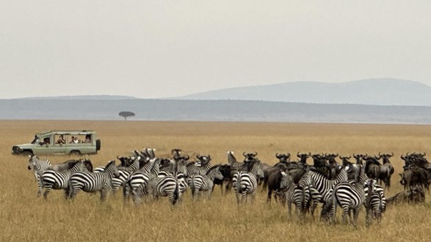 导览说:“你们看看马拉河附近的那小丘陵上,数万头角马与斑马已经聚集在一起了!”这下可会有“大事”即要发生?此刻,我的脑海却出现冯小刚执导的电影《集结号》,准备出兵又杀气腾腾的大场面。