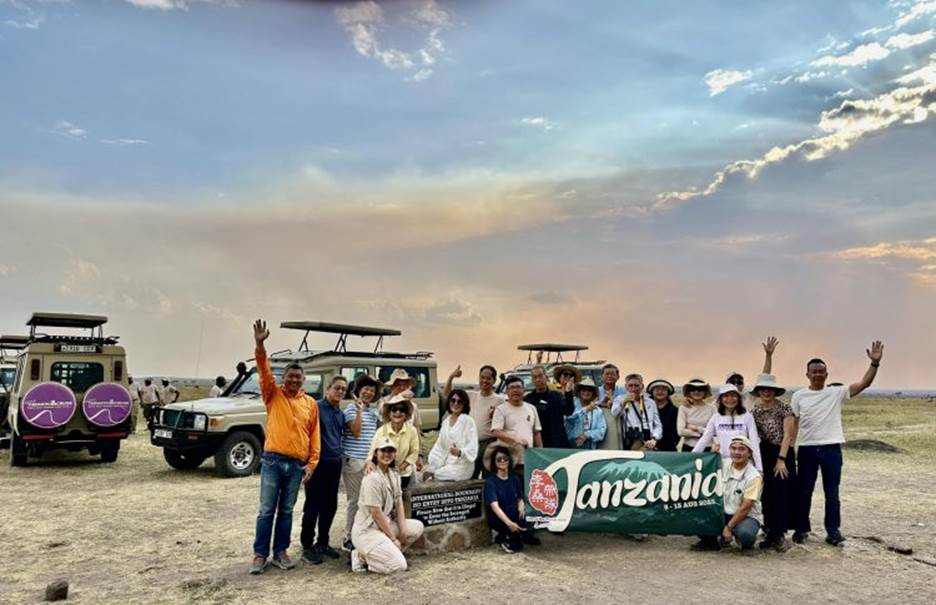 说时迟那时快,两头花豹竟然从草丛中冒出,并悠哉悠哉地路过我们的车子……导览说,它们八成是刚吃饱喝足,就不知是那一头蹬羚或角马为大局而牺牲了呢?旅朋友问:“它们不是凶猛的野生动物吗?为何不攻击人类呢?”嘘,别出声,不是不攻击,而是没嗅到咱们的血腥味罢了!