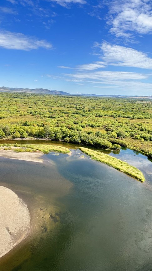 目前正是夏秋之季,根河大地一片粉绿淡黄的色彩,又是别种风情。第二天一早,17辆越野车载着我们驶入原始森林,途经河流湖泊湿地,我们打开汽车窗镜,欣赏流动的白桦林、大地色彩风貌,聆听风声之余,忍不住深深呼吸;此时,我们已经深入原始的鄂温克族部落中。