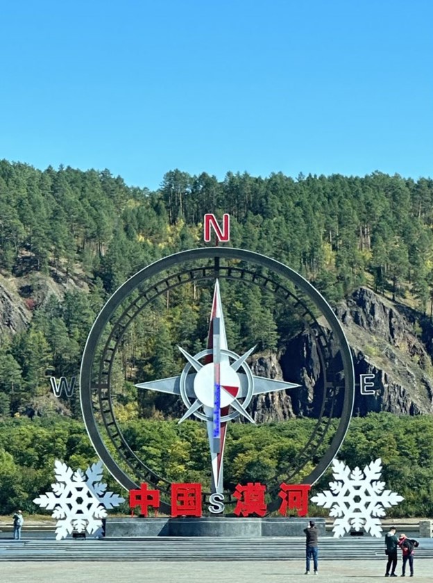 又过了一天一夜之后,列车在早上8点抵达了中国的极北——漠河站。我打开手机定位,确认我们已经在黑龙江的中俄边界线了。