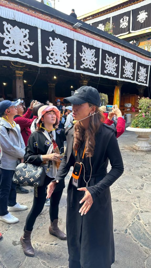 事实上,通过智能耳机就能清晰听见宗巴所说的话,但我们依然非常乐意地紧随着她的脚步,不知不觉地靠近她,就是一刻都不想错过与她的对视交流,听着她娓娓道来有关大昭寺、文成公主与藏教的错综复杂联系……同时,也是与我们的生活息息相关的人生哲理。