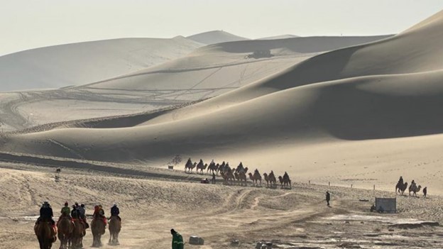 读到这里你也猜对了,我正在走读着举世闻名的丝绸之路旅途上,已经途经金昌的1号火星基地、巴丹吉林大沙漠、张掖的七彩丹霞、马蹄寺、嘉峪关、酒泉,并且抵达神秘的敦煌市(敦大也,煌也),还参访了璀璨的艺术宝库莫高窟呢!众所周知,这一段路程被称为丝绸之路最重要的“河西走廊”段。
