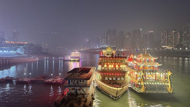 重庆朝天门码头的莱佛士广场大楼群焕然一新,也提升了重庆与长江三峡游轮作为始发码头的地位。