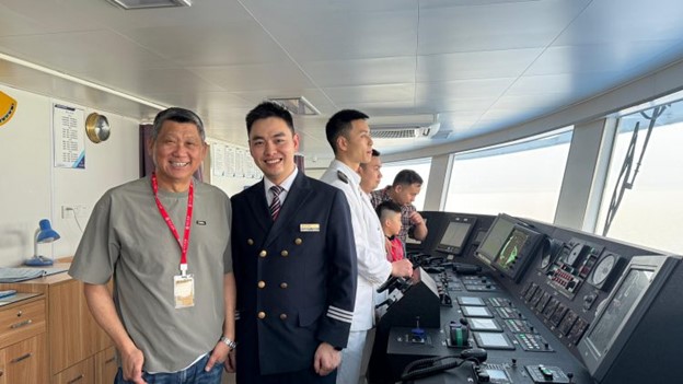 果不其然,在甲板前看见凯歌号的外形全景时,不禁眼前一亮!我迫不及待登上了游轮随处观察了一番,260个房间,配上180名船员,他们平均年龄30岁以下,重点是一半都能说上些英语;丹尼尔刘的英语还带着欧洲腔,一线过呢!