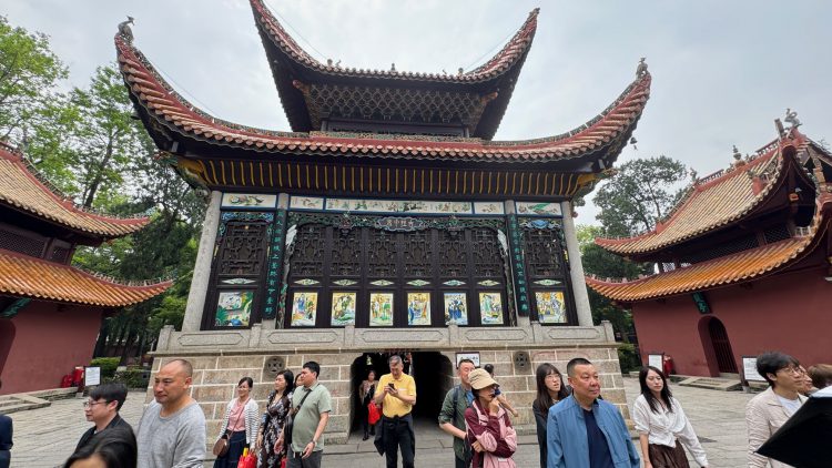 湖南省南岳区文旅局局长戴慧玲,连同几位文旅业者,与特约讲解员们牵引着我徐徐步入1300年历史的南岳大庙,大家一起穿越过“棂星门”,就意味着我们踏入了“江南小故宫”。虽说这里只是一座大寺庙而已,不过来头果真不小,还见识了人山人海的大场面。