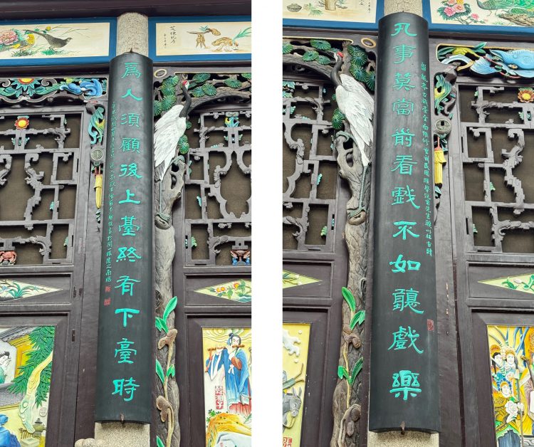 戴局引领我到戏台前说:你看,这是给帝王看戏的呢,还是属于众神的戏台呢?然后对着那高高挂起的对联读了一读:凡事莫当前,看戏不如听戏乐;为人须顾后,上台终有下台时。