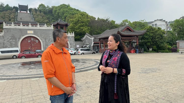 戴慧玲局长在南岳衡山广场上访问李桑,互相交换意见之后筹谋着如何能把南岳衡山的灵气散播到全世界。
