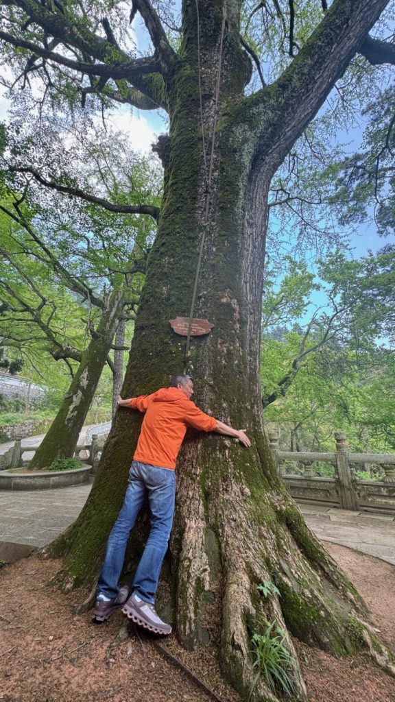 来到祝融峰边上的福严寺外,我与好几棵1554树龄的银杏树不期而遇,我怀着敬畏之心紧紧地拥抱了她们,这些老树见证了多少个世纪时代的变迁变化,却也在香火经诵的熏陶之下明智悟道!