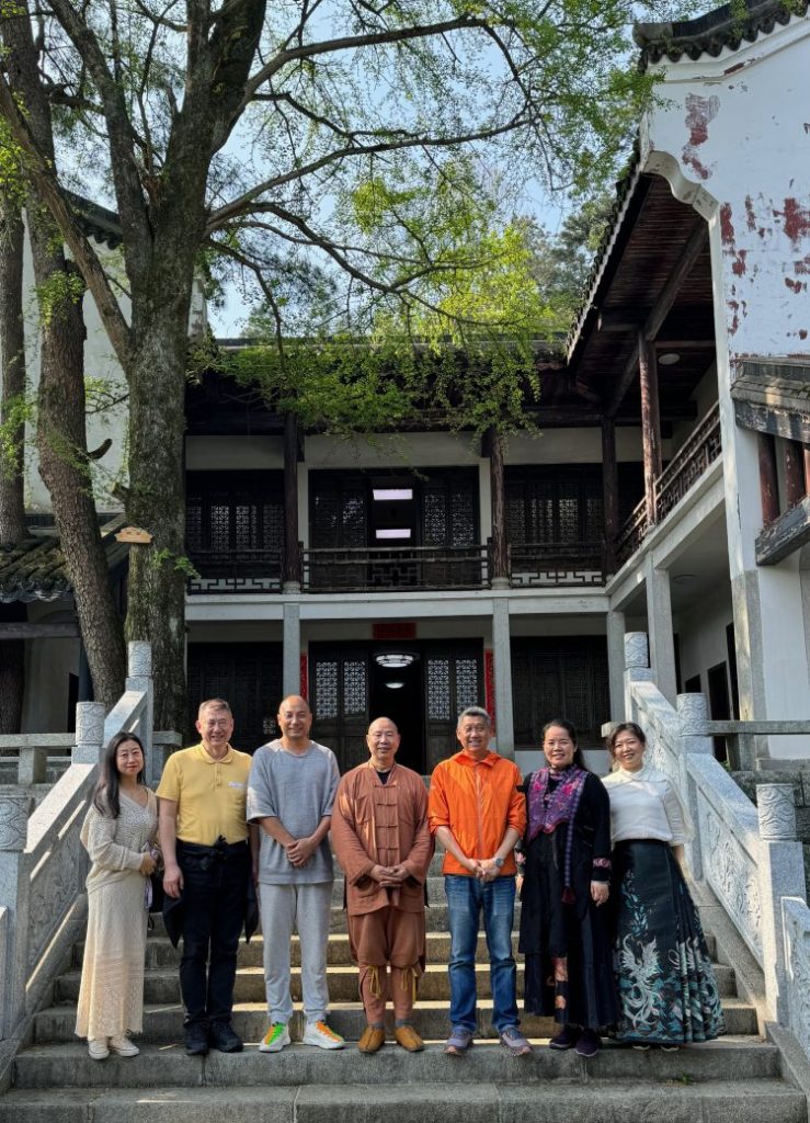 有缘与福严寺住持释大岳法师一聚一谈,获益良多;右二是戴慧玲局长。