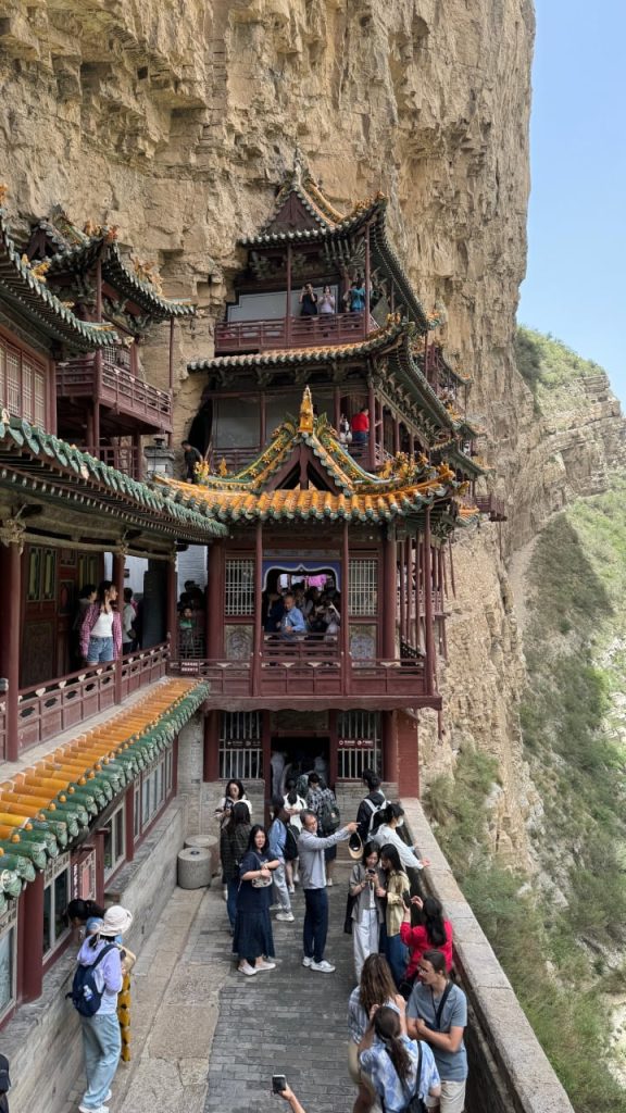 在北岳恒山登上拥有1400多年历史的悬空寺当下,我俯视着周边悬崖峭壁与山谷间激流河道,一股强而有力的风线正掠过,吹得大家东歪西倒之际,我不仅纳闷,心想着千年工匠与佛家子弟们为何要在如此玲珑奇危的位置上打造这座贴壁悬挂的寺庙呢?无论如何,如今的悬空寺依然是全中国唯一佛道儒集于一家的寺庙,果真是相濡以沫、享誉天下,值得排队一个多小时登顶啊!