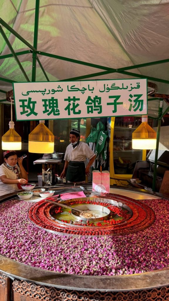 祖儿不仅是导游,还是少数民族舞蹈老师,性格开朗活泼。每当提到少数民族的民间艺术时,她都会即兴扭动舞姿,带动氛围,赢得旅友们的热烈掌声。新疆人天性豁达,喜爱多彩的服饰和与人分享美食。如今,00后新疆青年普遍能流利地说普通话(华语),教育水平也高达高专和大学毕业,与时俱进地展现出新的风貌。庆幸的是,在时代变迁过程中,新疆少数民族依然还是保持自身传统与习俗,尤其是母语、文化、美食、节庆习俗的一脉相承,原汁原味。