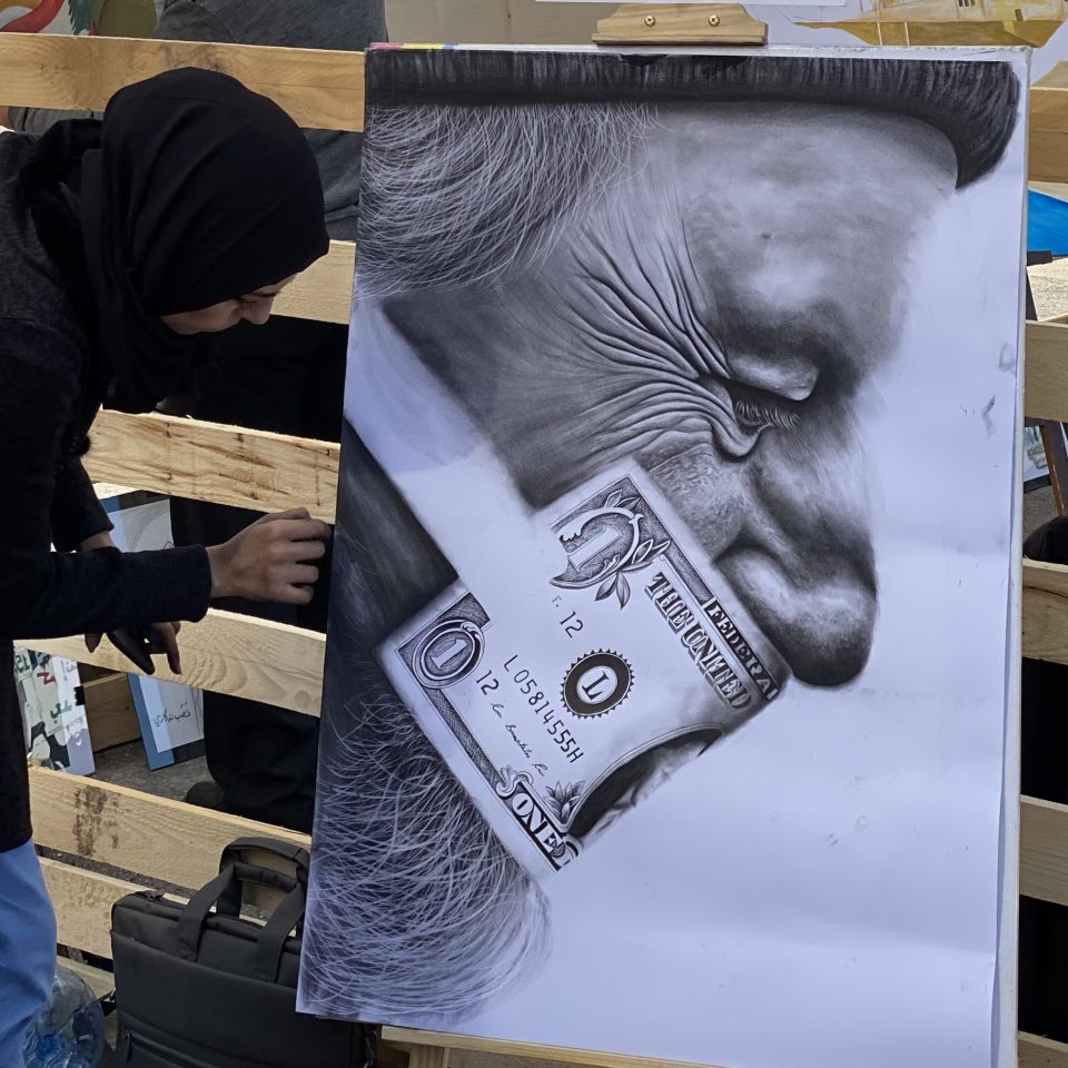 美钞成为生活的寄托与希望:兵荒马乱的黎巴嫩贝鲁特街头,一位青年画家在喧嚣中专注地完成今天的订单,试图用画笔换来几张美钞。也许,在遥远的乌克兰,饱受战火之苦的难民们同样渴望手中握有几张美钞,好撑过眼前的苦难……。