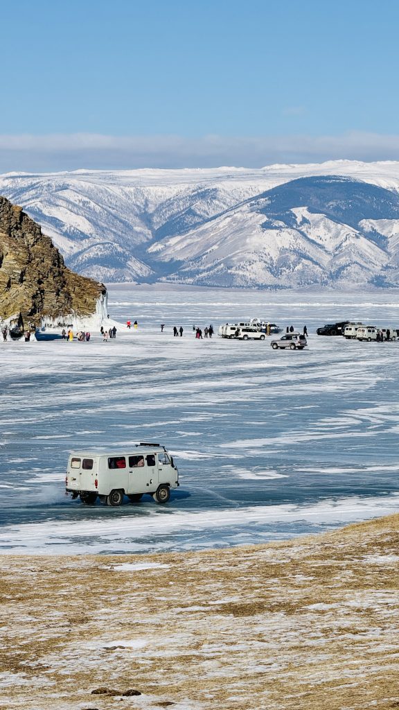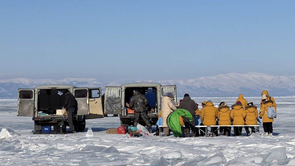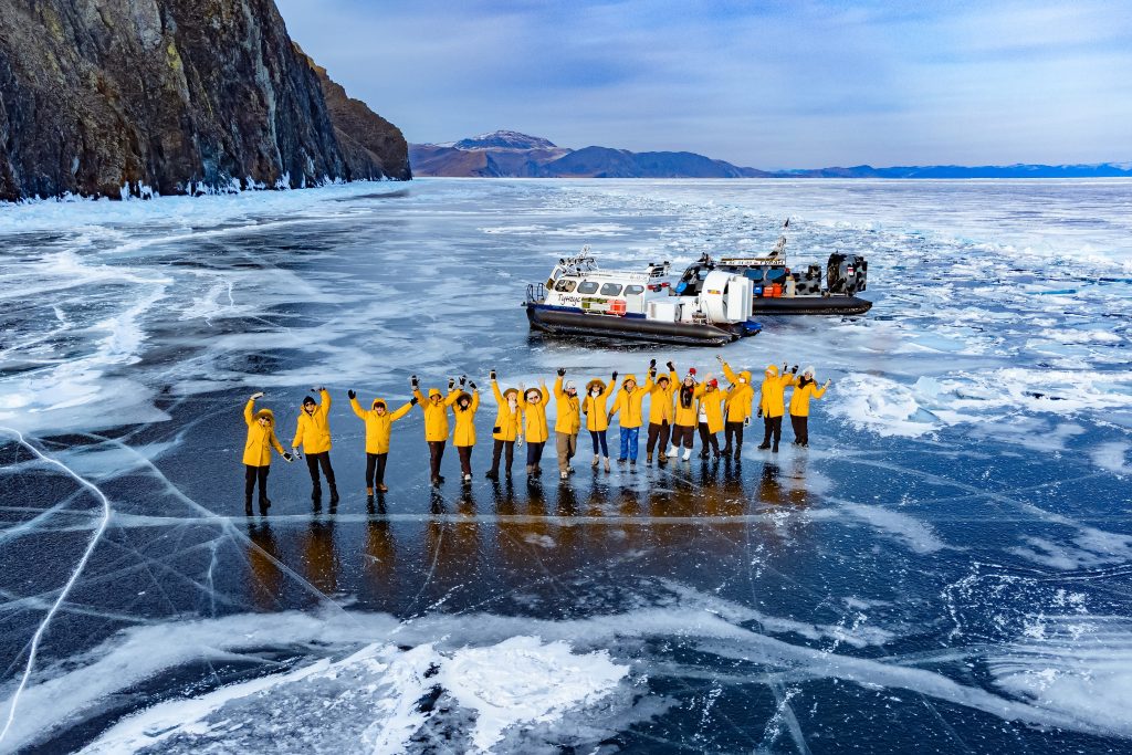 清晨,Listvyanka镇的冰封湖面上,在那冰雕旁,数十艘气垫船集结,准备开启一整天的蓝冰世界探险。此刻的贝加尔湖,宛如一颗镶嵌在蓝色星球上的蓝宝石,深邃而透彻,寂静如世外桃源,成为极佳的生态体验地。