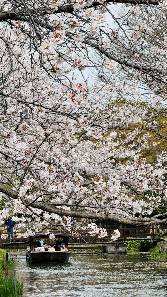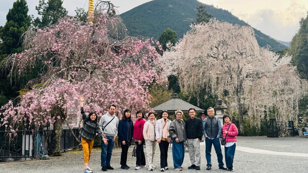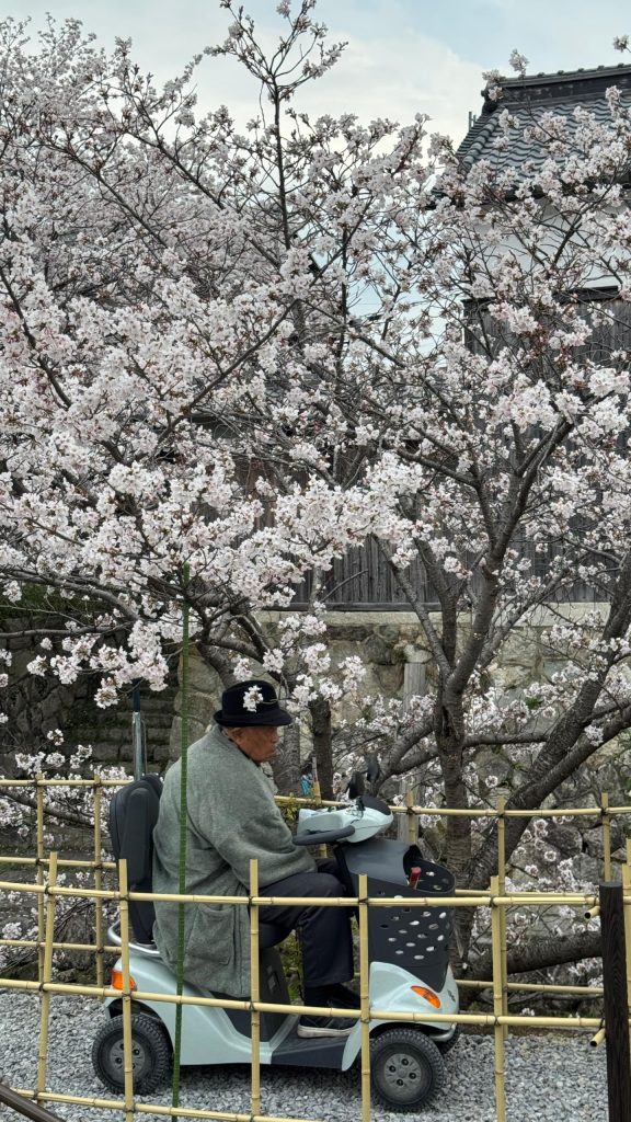 有趣的是,我们还在近江八幡碰到一位日本爷爷,坐在轮椅上赏花,他笑着跟我们说:“我每年都来这里看花,因为这代表我又平安地走过了一年。”这句简单的话,让我们全团都安静了几秒。原来,赏樱不只是浪漫,也是一个人、一个家庭,对岁月最温柔的告白。