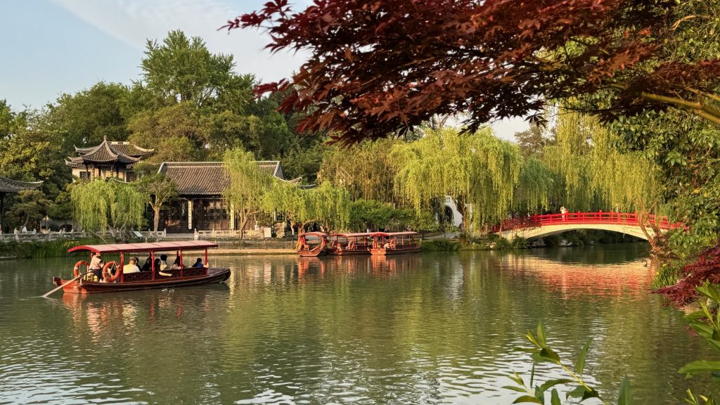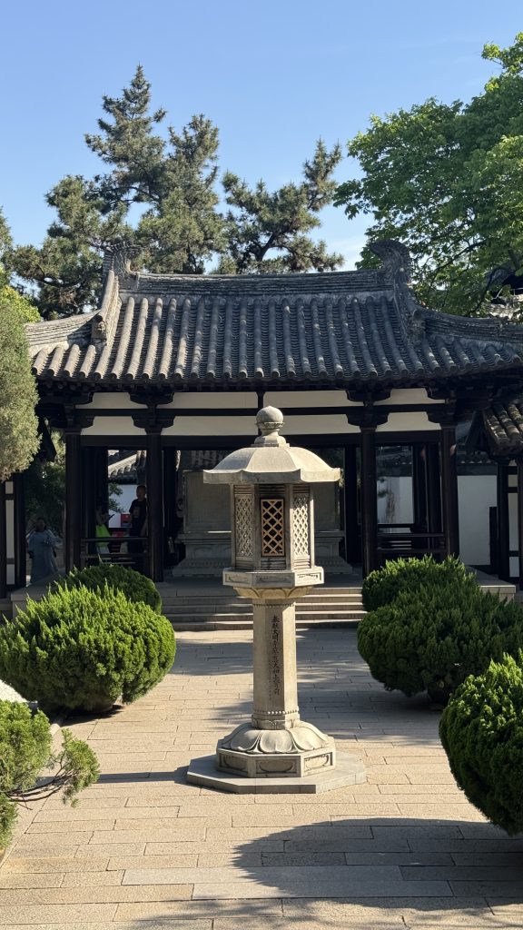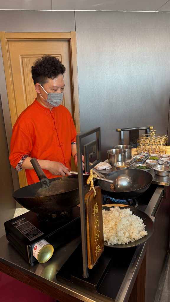 我特意搭乘三轮车前往“御马头“,尽管今非昔比,但运河水依旧悠悠,码头旁还保留着当年乾隆巡幸的陈设与图片,令人遥想盛世荣光。运河边的“冶春”与“富春”两家百年茶楼也依旧兴旺,我们一行17人更是在此体验了一回乾隆皇帝的“御用早茶”,汤包皮薄馅多,蟹黄鲜美,配上清香碧螺春,妙不可言。