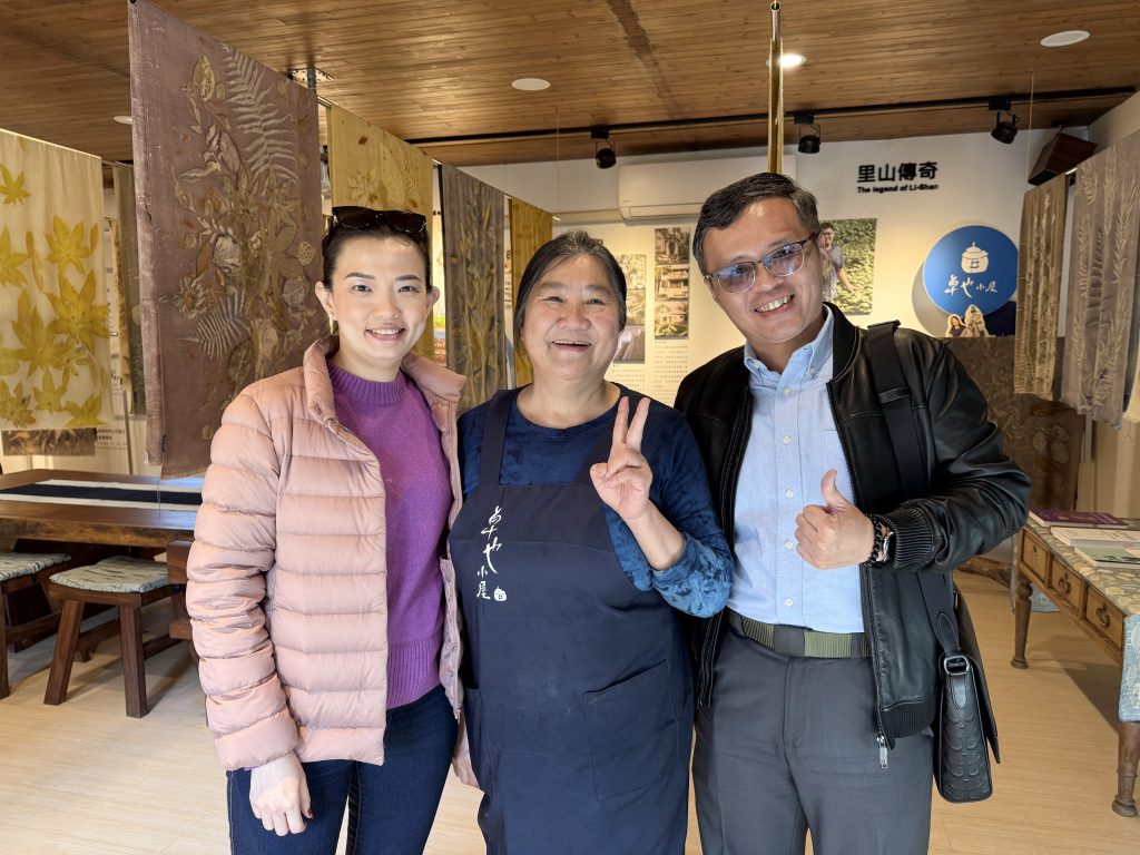 在这里,我亲手体验了蓝染工艺。蓝染在台湾已有悠久的历史,曾是民间常见的布料染色技艺。工作人员将一桶桶深蓝色的染液摆放在案前,我们挑选白布,浸入染缸,再轻轻提起。原本的素布逐渐染上蓝色,经过折叠、捆绑与浸染,呈现出独特的纹理图案。手中的布料,是一次偶然与巧思的结晶,也是一段旅程的纪念。
