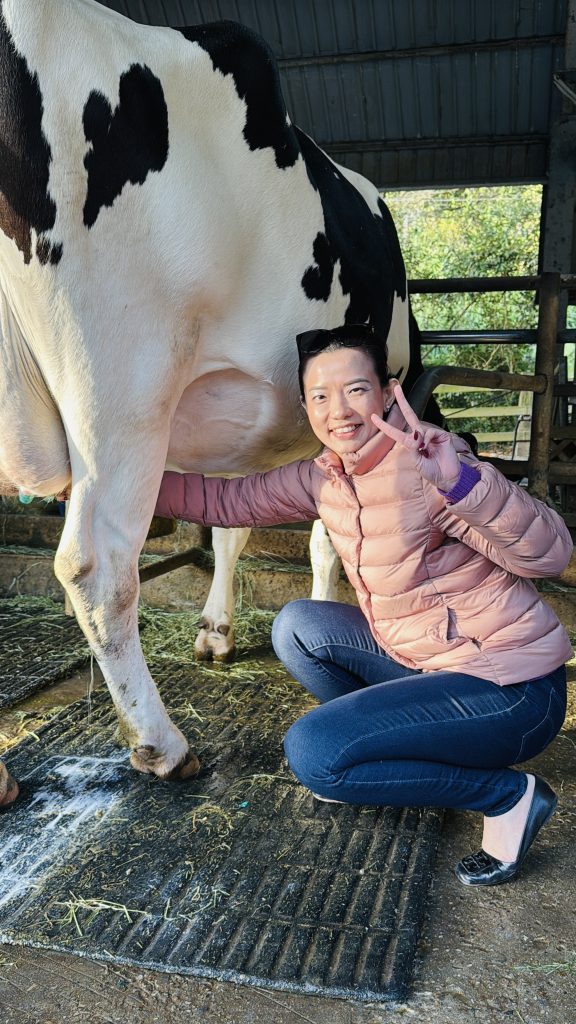 最让我期待的,莫过于亲手体验挤牛奶。牧场工作人员细心指导,教我如何正确握住乳牛的乳房,轻轻一挤,温温的牛奶就被挤了出来。那一刻让我深刻体会到「从农场到餐桌」的真实过程,也更加珍惜日常生活里看似寻常的一杯牛奶。