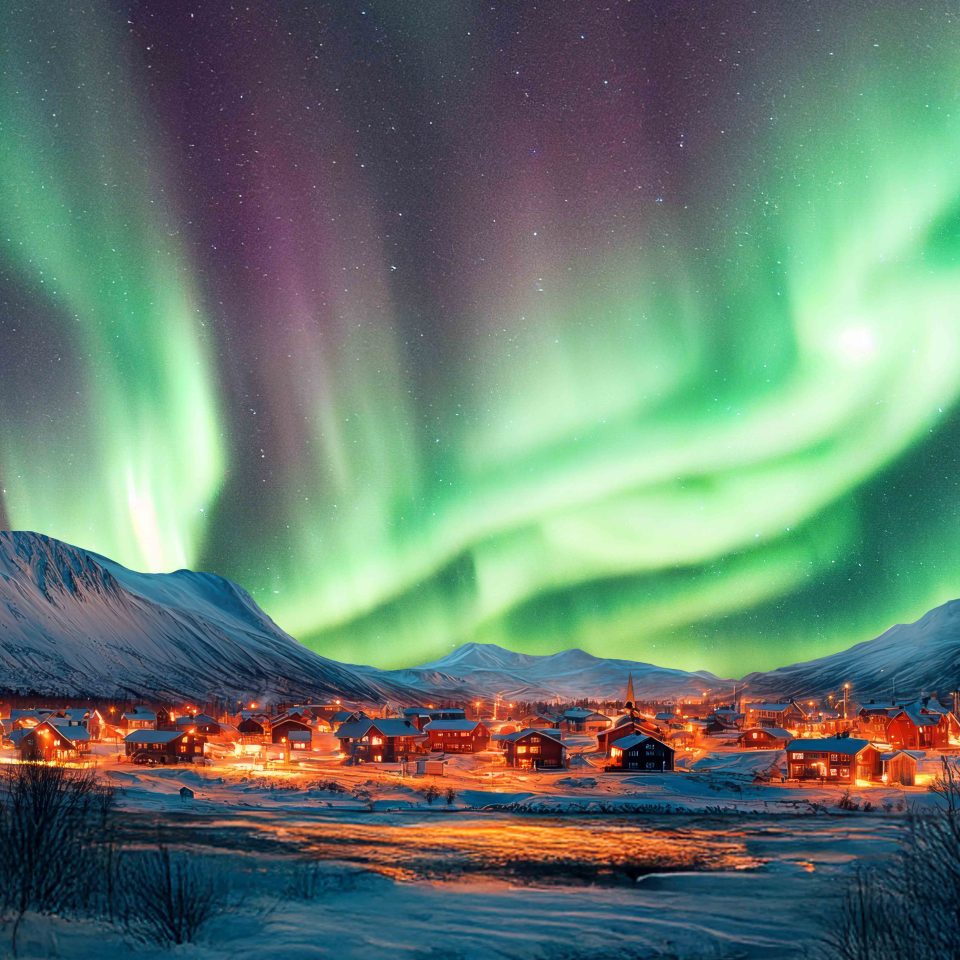 抵达山顶,寒风迎面而来。整个特罗姆瑟尽收眼底,峡湾、雪屋与灯火交织成一幅静谧的画。就在那寂静的夜色中,北方的天空忽然亮起,极光像轻盈的舞者在空中旋转、飘动,流光在云间穿梭,色彩层层叠叠,如梦如幻。 那一刻,所有人都静默无言,只听得见风在山顶呼啸,像为这场冬夜的光之舞伴奏。