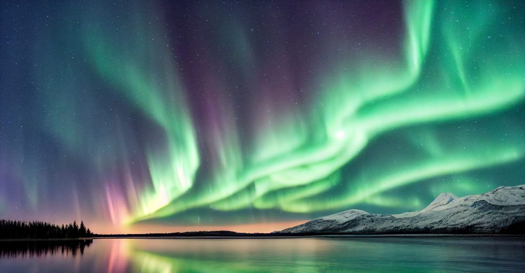 极光(Aurora Borealis),是太阳风与地球磁场交织的奇迹。当高能粒子撞入大气层,它们在夜空中燃烧、跳跃,化作绿、紫、粉的流光。听起来像一场冷冽的物理现象,然而当你亲眼看见它时,那种柔软与浪漫足以让人无言。 极光不会按计划出现。你不能预订它,只能等待它;不能催促它,只能相信它。那种“等待”的过程,正是追光旅程最迷人的地方。