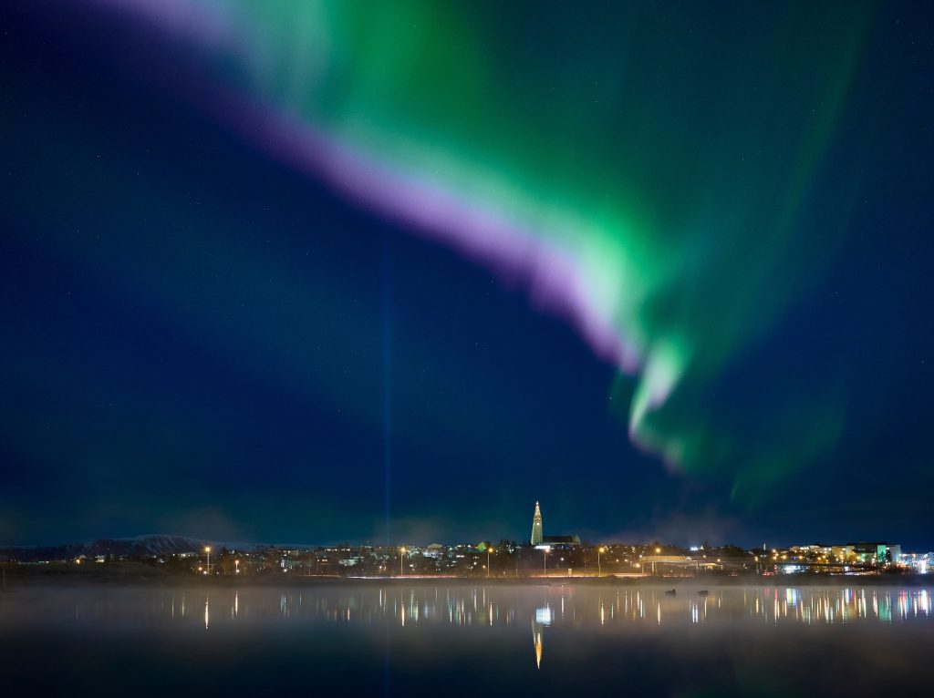 船长关掉甲板灯,众人屏住呼吸。过了一会儿,北方的天际出现了微弱的绿光,渐渐升腾、弯曲、舞动,仿佛在海面上点燃一条流动的火焰。波光粼粼的海面倒映出极光的涟漪,天地之间只剩下光与静。