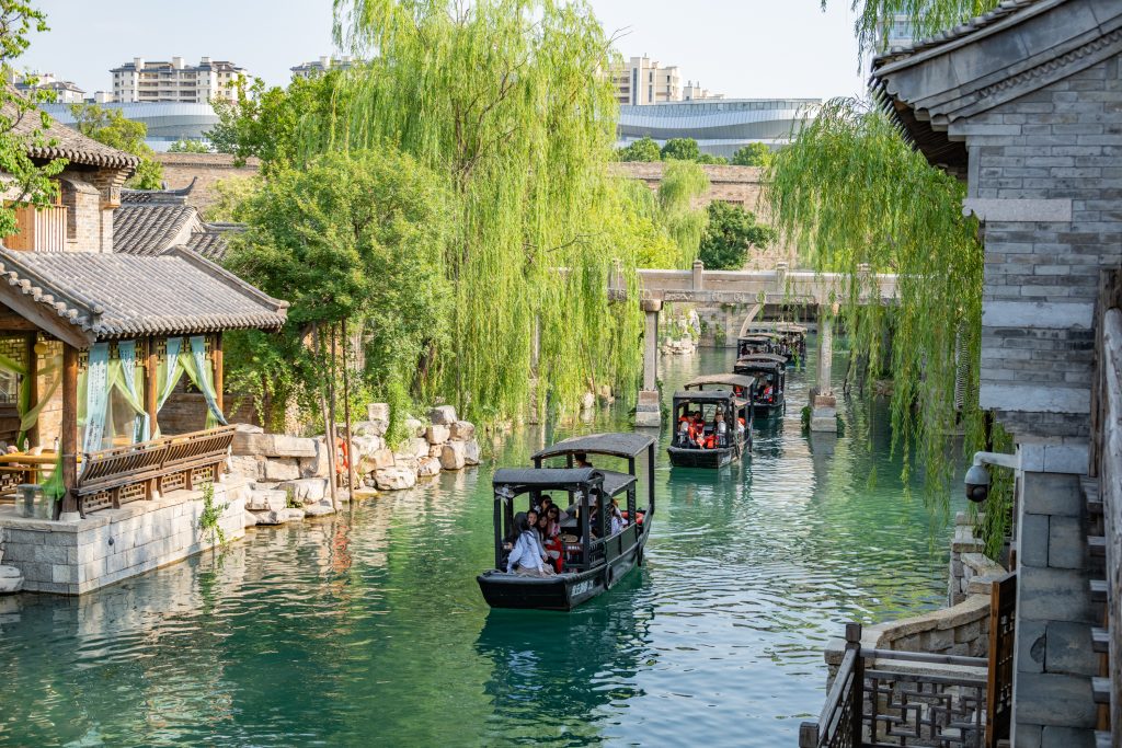 相比济南市区的老城气质,明水古城更像一座精心规划的古镇景区。古城整体是仿古建筑风格,小桥流水、青石板路、木质房屋,布局类似江南水乡,但规模更大。白天适合慢慢逛街,街巷里有很多茶馆、咖啡店和传统手工艺店。