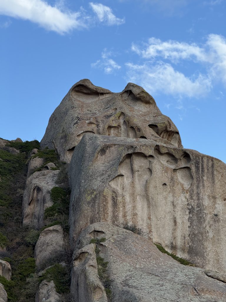 岩石形态各异,有的如动物伏卧,有的似人物伫立,也有层层叠叠如天然雕塑。