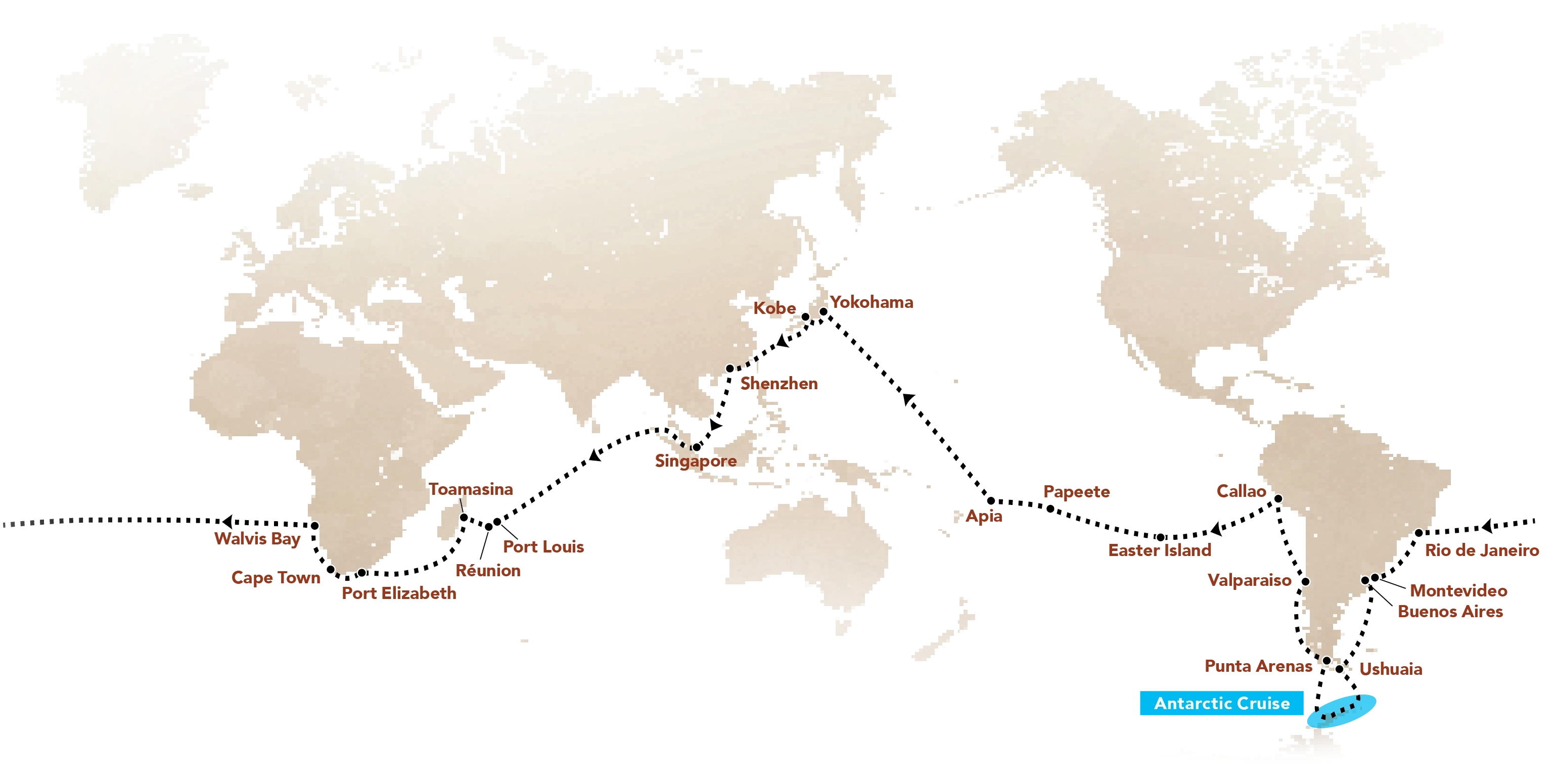 A standout feature of this voyage is the cruise through the Antarctic region. Passengers will witness the untouched wilderness of the South Pole, experiencing awe-inspiring icebergs, glaciers, and diverse wildlife in one of Earth's most remote areas.