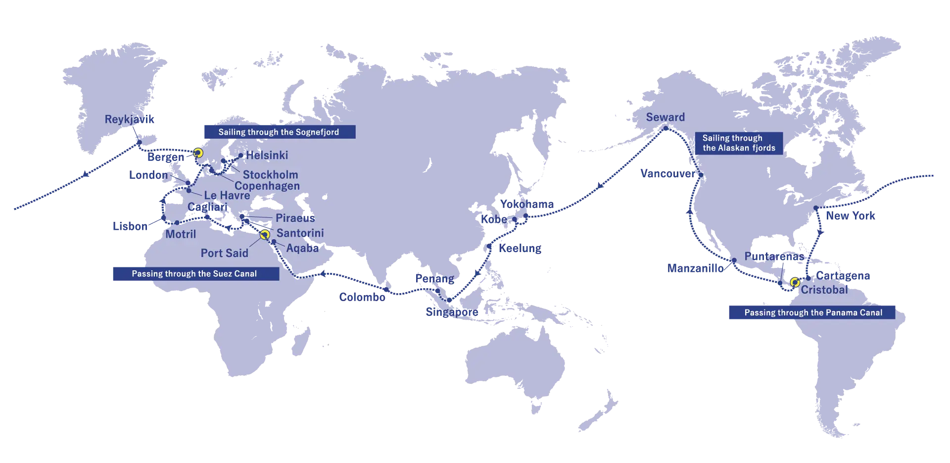 Join the 2027 Spring World Cruise and visit 25 stunning ports across Northern Europe and beyond. Highlights include cruising through Norway’s lush Sognefjord and Alaska’s icy fjords—breathtaking views only possible by sea.